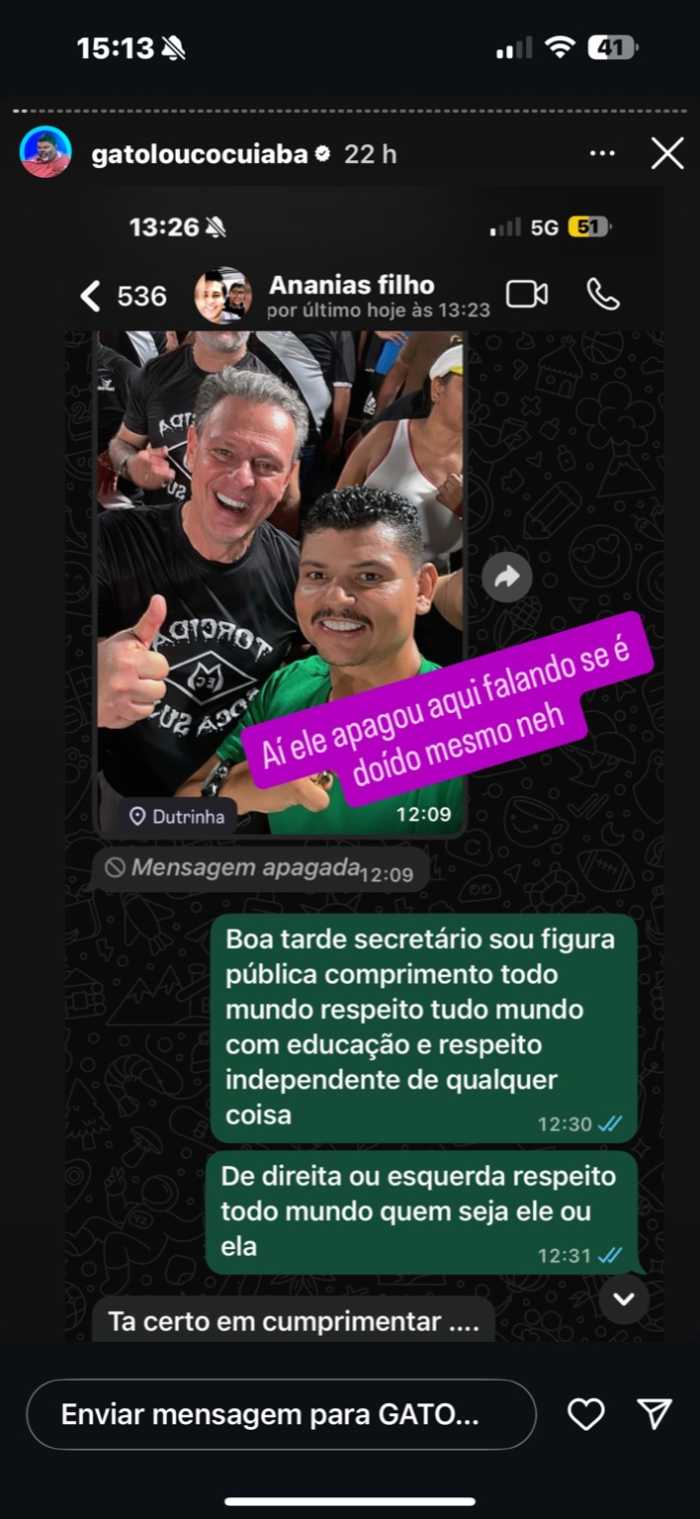 A polêmica segue repercutindo nas redes sociais, onde Gato Louco prometeu fazer uma live para detalhar o caso e chamar atenção para o que classifica como perseguição.